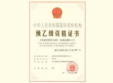 • 中華人民共和國國際招標機構預乙級資格證書
